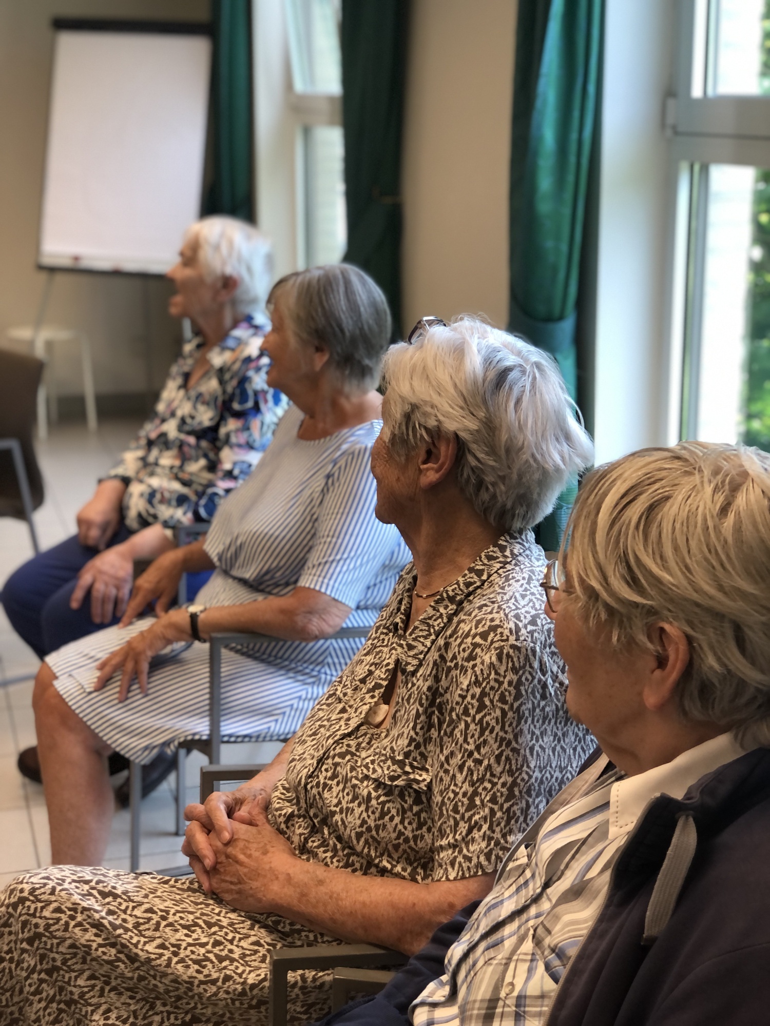 Vier tinten grijs; aandachtige bewoonsters in OLV Van Troost, 2025, foto door Lies Vandeburie.