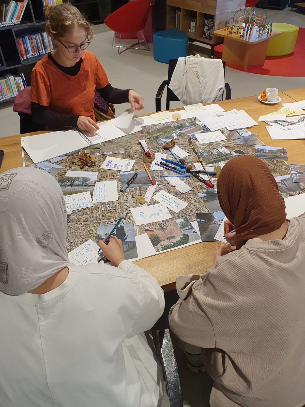 The effort to construct such spatial and temporal qualities was met with more challenges and frustration than feelings of easiness and satisfaction, as is probably often the case when working in similar modes. From the start, the residencies that took place in Wij West were faced with a series of difficulties and concerns. The previously mentioned lack of spaces where people gather in the area, and the difficulty of reaching out to them and inviting them to invest time in participatory artistic process, were two of them. Another great challenge was the way artistic activities could be designed so that they are on the one hand warm and welcoming, while on the other hand not merely fun, superficial interventions or top-down didactic experiences but also a frame for safe encounters where the difficult questions (usually hidden under the carpet especially in similarly diverse areas) could also appear. The way we could build on existing local actions, processes and needs, instead of proposing something entirely new from the outside, was a third challenge.