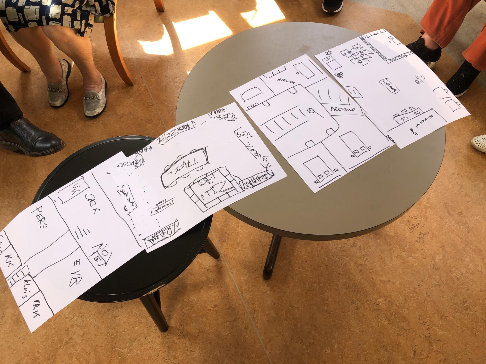 De plattegrond van onze verzonnen ‘oude villa’ tijdens een theatersessie in woonzorgcentrum Lozanahof, 2024, foto door Lies Vandeburie.