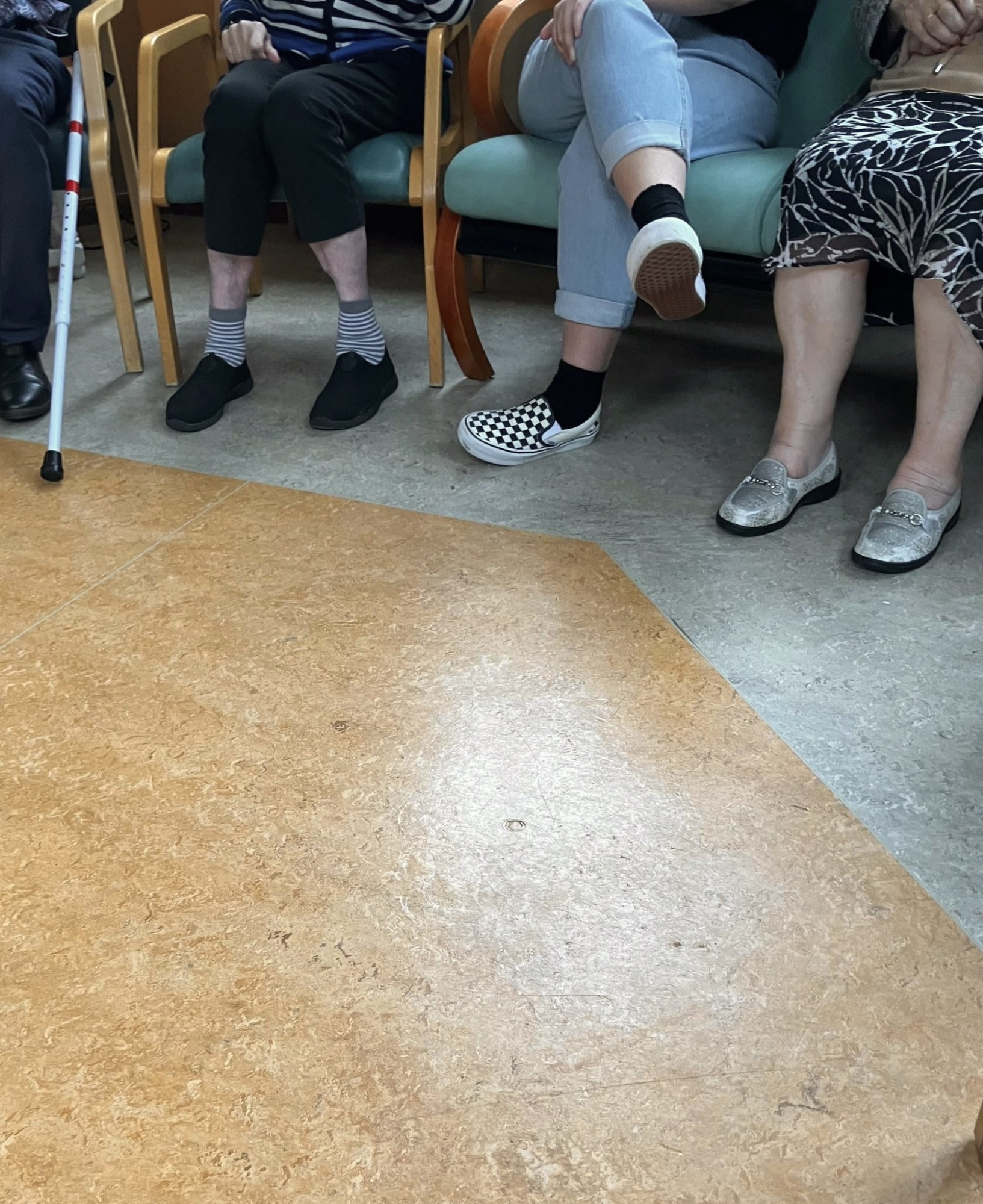 Balatum en benen in woonzorgcentrum Lozanahof, 2024, foto door Lies Vandeburie.