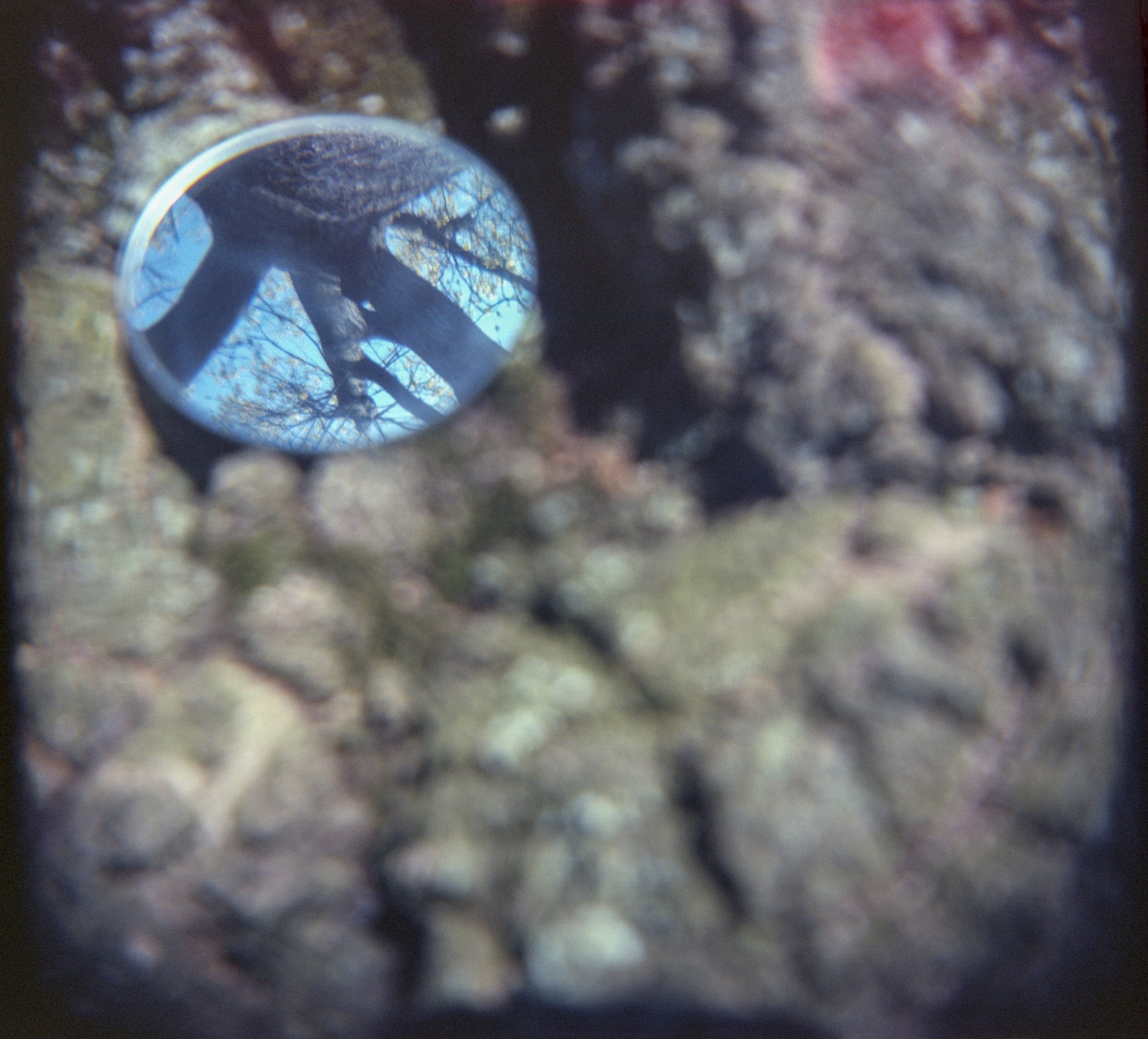 We explore this possibility through the presence of reflections within the photo – not reflections of the seeing subject, the camera, or any preexisting object within the frame, but instead, a double reflection. The double-reflection emerges in two different directions from the surface of a single mirror. One direction reflects the invisibility of the camera and the subjective gaze; the other reflects the absent world, presenting in the mirror in its excess as the infinite horizon.