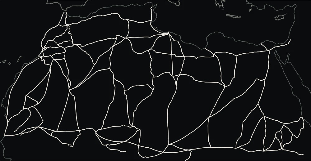 Trans-Saharan trade route map, elaborated by Carlos Perez Marin with the collaboration of Amado Alfadni, Eleonora Castagnone, and Pau Catà in the context of the project Beyond Qafila Thania.